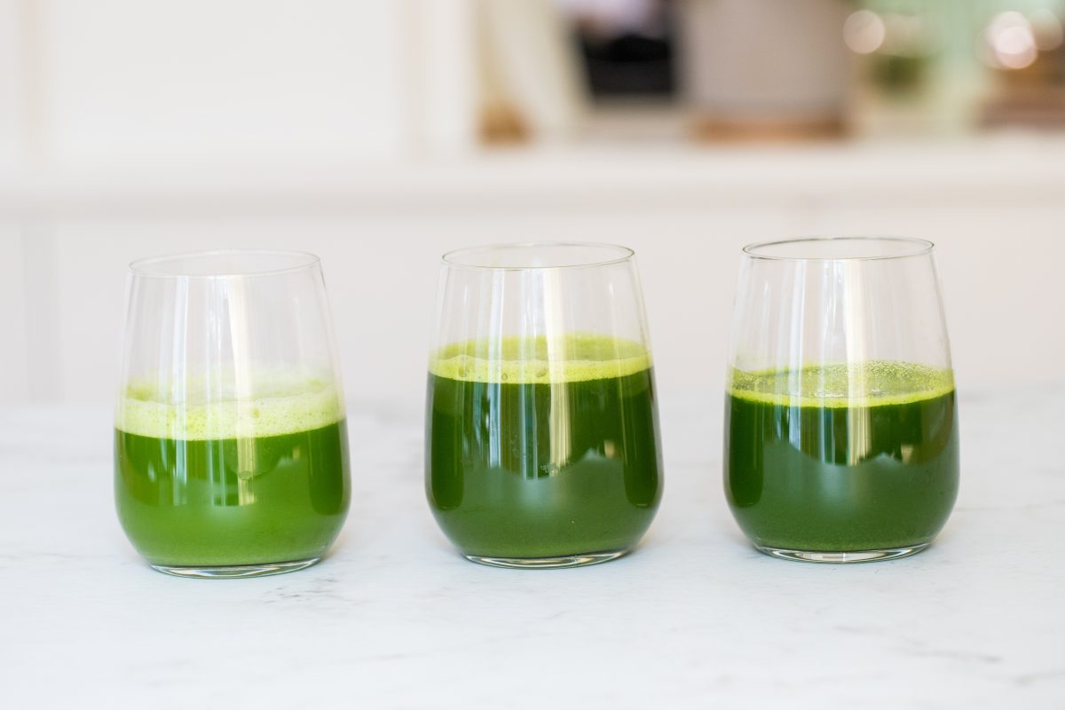 2. Nước ép giàu màu xanh thanh lọc thận : 400g cần tây + 200g dưa chuột + 200g rau xanh . Cho vào máy ép lấy nước, khuấy đều trước khi uống. Khẩu phần chia làm 2 lần uống tuỳ theo nhu cầu cơ thể mỗi người, mỗi lần uống tầm 250 – 300ml hoặc hơn.