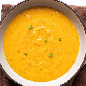 Món cháo hạt diêm mạch bí ngô giàu protein, chất xơ, vitamin và khoáng chất tốt cho đường tiêu hoá trẻ nhỏ. Món cháo này có vị ngọt từ bí ngô nên rất ngon.