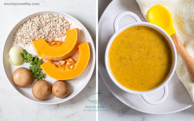 Cháo nấm bí ngô yến mạch tốt cho trẻ ăn dặm và người lớn