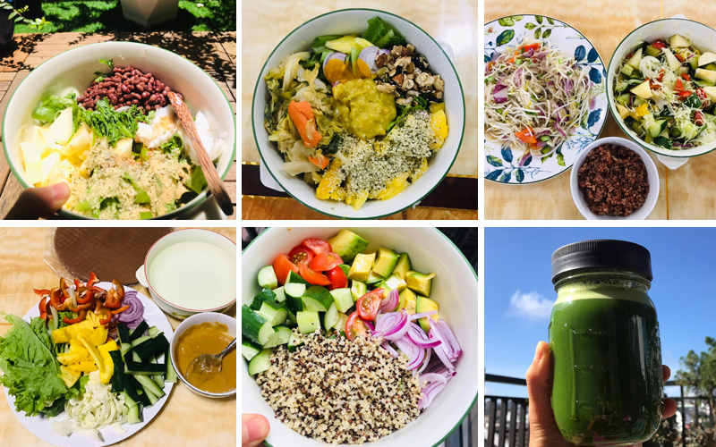 Rồi từ 1 đứa vụng về như mình lại cảm thấy thực sự mong chờ mỗi bữa ăn đến, thực đơn đã có sẵn, có bạn hỗ trợ thường xuyên, món ăn lại đa dạng, màu sắc, chế biến nhanh, không phải nấu nhiều, không khói bếp…. Ôi nói chung là mình bị ghiền ấy, nhất là món salad, gỏi cuốn  ngon dã man, 2 bé con toàn đòi ăn ké. Ngạc nhiên là sau khoảng vài ngày ăn, mình ko còn bị cám dỗ trước những món mặn nữa nên hôm nay là ngày bao nhiêu ăn chay mình cũng không nhớ nữa. Chỉ biết là mình cảm thấy cơ thể mình như được tái tạo về thể chất và tinh thần, cân nặng đã nhích lên 47kg, ăn cảm giác ngon miệng, vậy nên mỗi bữa chế biến món ăn mình như muốn gửi tất cả yêu thương, mong muốn sự bình an, chữa lành đến cơ thể để cơ thể mình cũng sẽ đầy màu sắc, tươi mới và “ngon” y chang mấy món mình làm ra  ý kiểu là: Hãy ăn món từ những người có tâm hồn nấu. Đây sẽ là những viên gạch khởi đầu cho chặng đường ăn để chữa lành của mình sắp tới, hẹn gặp mọi người sau liệu trình 10 ngày thanh lọc, phục hồi năng lượng.”