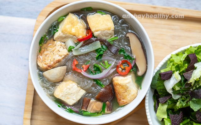Món canh chua giò chay vị nấm thơm ngon ăn kèm với cơm hay bún,...