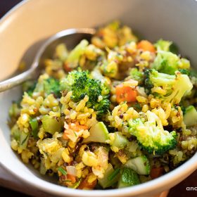 Món cơm rang kiểu này không mất nhiều thời gian lại tận dụng được rất nhiều rau củ còn thừa trong tủ lạnh, cũng như là cách cho con và gia đình ăn rau đơn giản.