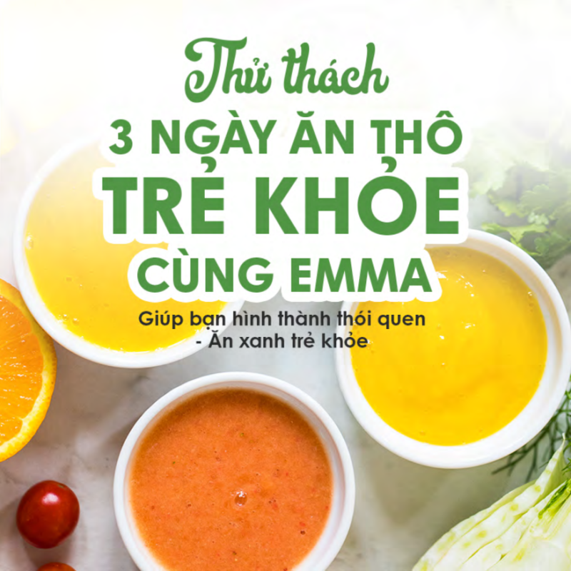 Ăn thô hay gọi RAW VEGAN là phương pháp ăn thiên về thực phẩm tươi sống từ rau củ quả, đậu ngũ cốc. Là một trong những phương pháp có tính chất trị liệu chữa lành thành công đã được kiểm chứng thực tế. Lộ trình Detox 10 ngày tái tạo năng lượng trẻ hoá làn da đã chữa lành hàng nghìn người khỏi các bệnh mãn tính mà uống thuốc mãi không khỏi như đau đầu, mất ngủ, xương khớp, gout, tiểu đường, gan nhiễm mỡ, trào ngược, dạ dày, máu nhiễm mỡ, viêm da, hen suyễn, nám tàn nhang, giảm cân.. theo phương pháp ăn tô thải độc. Do đó Health Coach Emma Phạm tặng cả nhà Thử thách 3 ngày ăn thô với mong muốn lan toả phương pháp này tới nhiều người hơn nữa, cùng nhau xây dựng cộng đồng khoẻ mạnh, hạnh phúc.