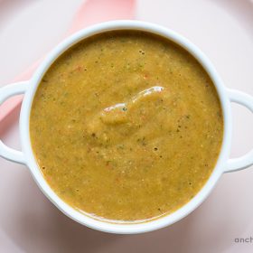 Xay hỗn hợp rau củ mịn theo độ đặc hay loãng của trẻ.