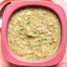 Món soup này có vị curry cũng rất ngon tạo cho bé thưởng thức hương vị mới. Với hàm lượng protein phong phú từ đậu lăng, đặc biệt tốt cho hệ miễn dịch trẻ nhỏ từ các hương vị hành, tỏi, bột curry. Món soup này rất tốt cho bé từ 9 tháng tuổi trở lên.