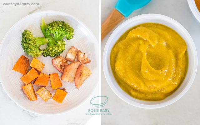 Súp lơ khoai lang táo nghiền cho trẻ ăn dặm từ 6 tháng trở lên